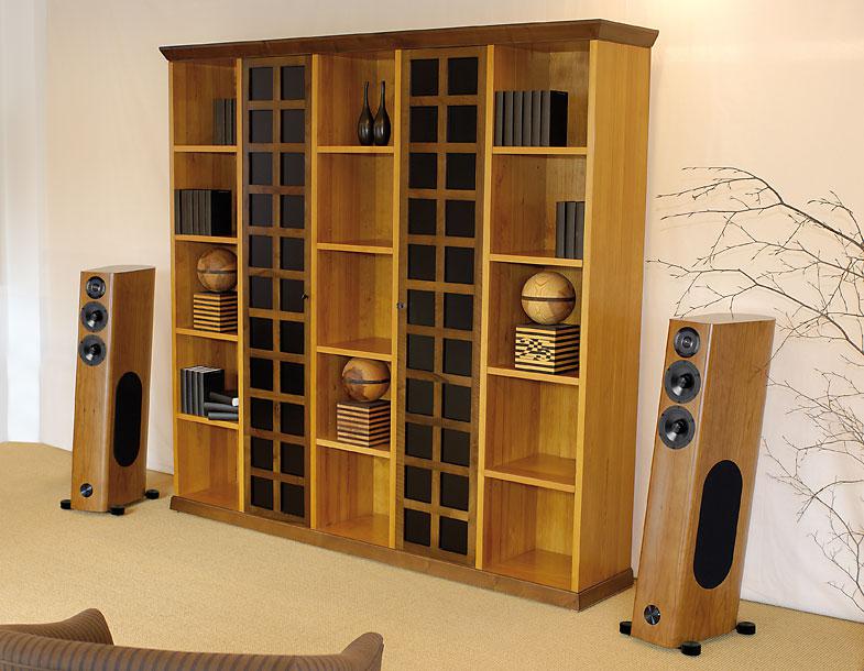 Впервые "большая" напольная акустическая система была создана в размере, приемлемом для размещения в гостиной без компромиссов качества воспроизводимого звука. Ширина фронтальной излучающей панели была минимизирована путём крепления басовиков на боковых сторонах корпуса. В результате родился элегантный стройный корпус, удовлетворяющий самым строгим требованиям и по звуку, и по эстетике.