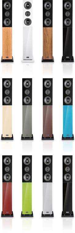 Стандартная отделка представляет собой акустические системы с отделкой деревом: светлый дуб, черный ясень, вишня, темный орех. За дополнительную плату можно приобрести специальную отделку в черном или белом рояльном лаке.