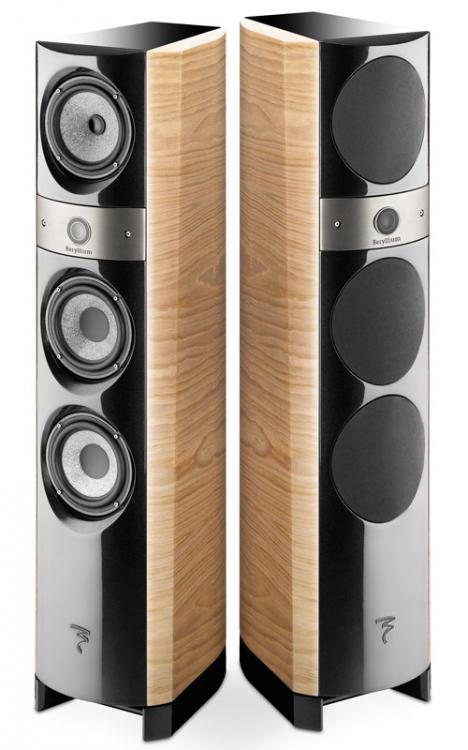 Конструкция 3-полосная, с двойным комплектом 16,5-см мидбасовых динамиков, работающих в акустическом оформлении с двумя портами фазоинвертора: расположенным в основании и тыловым. Предусмотрена возможность закрыть тыловой порт комплектной заглушкой для настройки нижнего регистра в зависимости от условий размещения и личных предпочтений, этим достигается ослабление басовой отдачи на 2 дБ на основной частоте 40 Гц. Вне зависимости от использования заглушки бас передается очень четко, плотно, с выраженной атакой без затянутых послезвучий – это традиционные черты фирменного почерка Focal. СЧ-динамик также 16,5-см, но иной по конструкции, в его звучании сразу отмечается богатая палитра тембров при исключительно открытом характере воспроизведения и нейтральной окраске. Такие выдающиеся технологии, как трехслойный W-диффузор в мидбасовых и СЧ-динамиках, ВЧ-динамик с бериллиевым куполом и бесконечной акустической нагрузкой (IAL, Infinity Acoustic Loading), еще недавно были недоступны в этом ценовом классе, а сегодня встречаются только в продукции Focal.