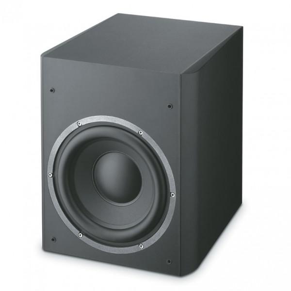 Корпус аппарата собран из массивных панелей MDF, толщина которых в определённых местах достигает 25 мм. Для борьбы с резонансами боковые стенки сделаны непараллельными, в дополнение к этому на каждой из них установлена мощная антивибрационная накладка. Динамическая головка, вынесенная на переднюю панель, обладает достаточно внушительным диаметром (27 см). При этом фирменный драйвер снабжён диффузором, изготовленным по технологии Polyglass, что позволило получить повышенную жёсткость при минимальной массе. Головка нагружена на фазоинвертор с выведенным вниз воздушным портом, заметно расширяющим низкочастотный потенциал. Здесь также используется высокоэффективный 300-ваттный усилитель BASH (в пике до 450 Вт). Коммутационный набор на удивление обширен и включает как линейные, так и высокоуровневые входы, отдельное гнездо LFE, а также колоночные выходы.