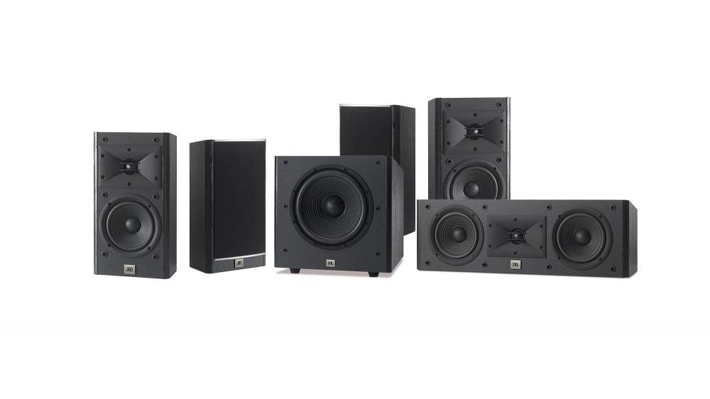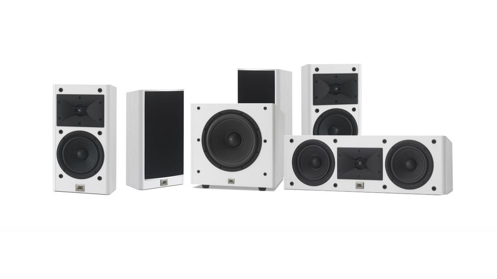 Набор акустики для домашнего кинотеатра, включающий акустику центрального канала JBL Arena 125C, четыре полочных спикера объемного звучания JBL Arena 130 (одна пара отвечает за фронт, вторая - за тыл) и сабвуфер JBL SUB 100.
