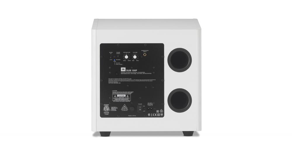 Современная форма кабинета со скругленными боковыми и верхней панелями обеспечивают элегантный, современный вид. Сабвуфер JBL SUB 100P доступен в черном и белом варианте, грили минималистично подчеркнуты матовой металлической отделкой.