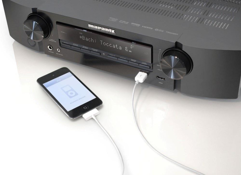 На передней панели USB порт позволяет подключить портативное устройство памяти как флешка, так и через USB кабель HDD жесткий диск, так что вы можете быстро и легко передавать ваши любимые музыкальные треки. В режиме ожидания, порт USB по-прежнему активны, что позволяет заряжать IPod Touch, iPhone или IPad.