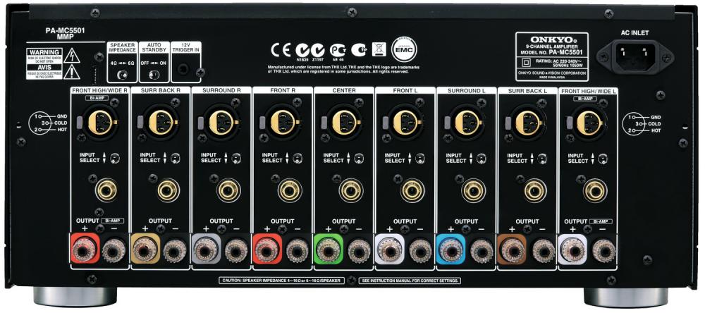 Такие компоненты, как тороидальный трансформатор, конденсаторы огромной емкости и мощные транзисторы – все рассчитано на очень высокие нагрузки. Повсюду используются компоненты аудиофильского уровня – в том числе массивные позолоченные колоночные клеммы и XLR входы. Результат: мгновенный отклик выхода на рост сигнала на входе, экстремально низкий уровень искажений во всем динамическом диапазоне, а также мягкая теплота и прозрачность звучания, которую могут обеспечить только аналоговые усилители топового уровня. В паре с согласованным процессором Onkyo, PA-MC5501 - с его девятью каналами усиления и возможностью би-ампинга, обеспечит экстраординарную гибкость в применении и возможность построения самых совершенных домашних театров, сертифицированных по нормам THX® Ultra2.