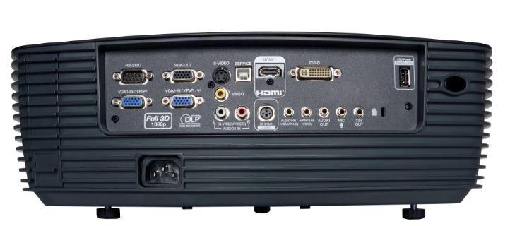 - Входы: HDMI (с поддержкой 1.4a 3D), DVI-D, 2x VGA (RGB/YPbPr), S-Video, композит, 3 x аудиовход (RCA/3.5 мм), Mic 3.5 мм, аудиовыход 3.5 мм, VGA выход, RS232, 2x USB-B (Remote Mouse/Service), USB-A питание, + триггер 12 В