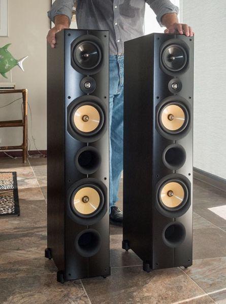Эти весьма крупные напольники массой по 23 кг в корпусах тёмно-пепельного цвета выполнены по трёхполосной схеме и оснащены парой 6,5-дюймовых НЧ-динамиков.
