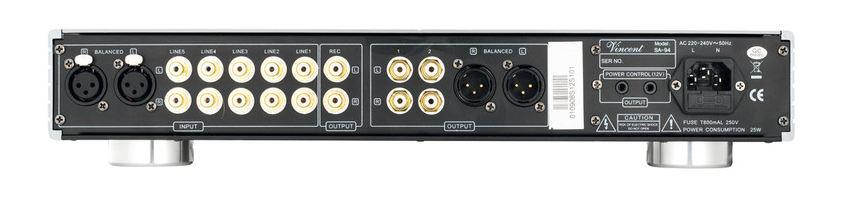 В предусилителе используется разработанный в Vincent модуль полевых транзисторов, который действует в DC-паре с пятью несимметричными и одним симметричным входом.
