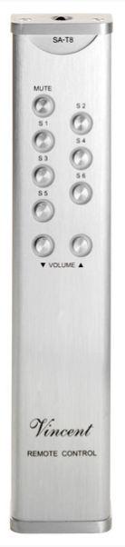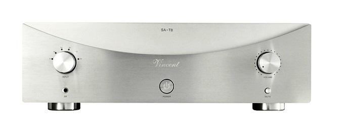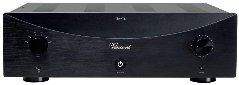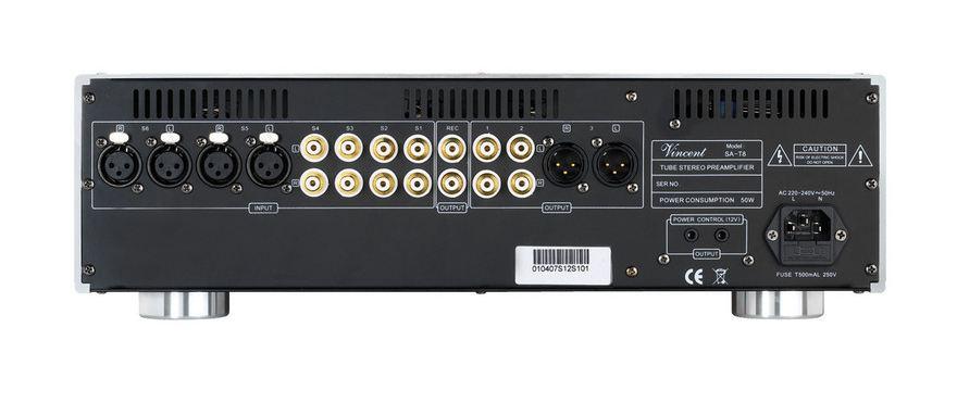 Предварительный усилитель Vincent SA-T8 весит 10 кг. Усилительная часть SA-T8 отделена от силовой. Два питающих трансформатора (по одному на каждый канал) с персональными выпрямительно-сглаживающими блоками находятся в отдельном отсеке. В другом расположена плата усилителя и блок терминалов. Предусиление реализовано на триодах 12AX7 и 12AU7 (Electroharmonix), причем лампы расставлены на плате с эффектной симметричностью.