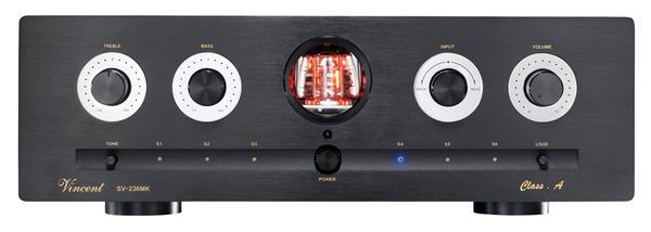 В Vincent SV-236MK применена новая схема стабилизации напряжения, для поддержания максимально короткого пути сигнала упрощена топология схемы. В предусилительной части использованы три лампы 12AX7. Элементная база продвинутого уровня включает конденсаторы WIMA. Компактный и довольно тяжелый (18 кг) Vincent SV-236MK поставляется в черном и серебристом исполнении.