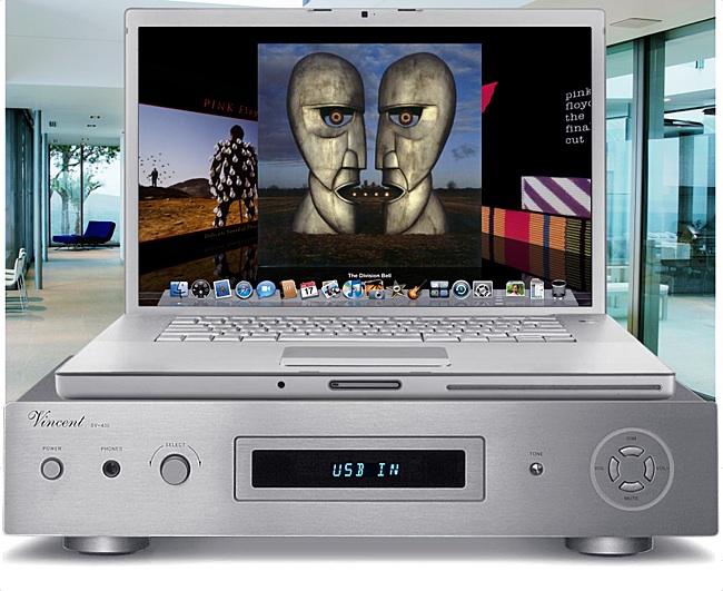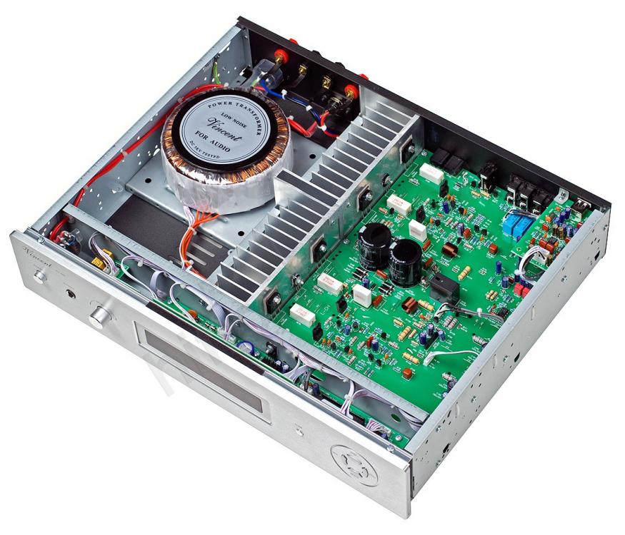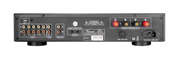 Интегральный усилитель Vincent-SV400, не смотря на свои скромные габариты обладает достаточным мощностным потенциалом, о чем говорит его масса в 9,5 кг. На борту мощный блок питания, гарантирующий стабильный контроль акустики. Емкость конденсаторов 6800 мФ. Через USB вход возможно проигрывание музыки с ПК либо сервера.