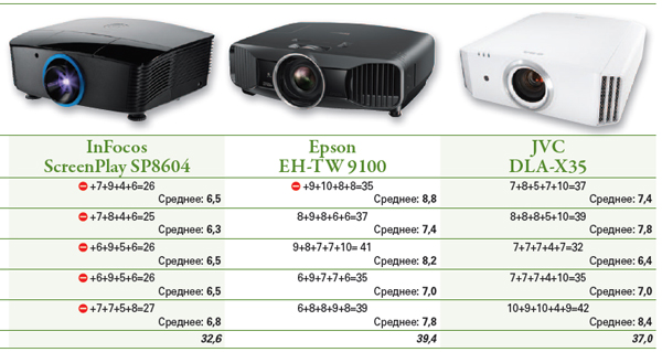 Таблица результатов теста проекторов