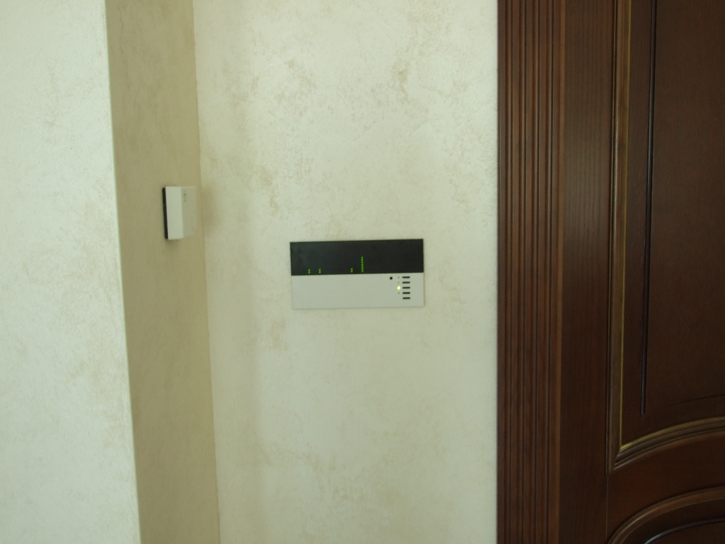 В большой комнате всегда много света и данное помещение не стало исключением. Для удобного использования и управлением пятью группами света мы использовали программируемый электронный диммер света от известной американской компании Lutron. Очень удобное и надежное устройство для программирования и управления различными сценариями света. Для программирования не нужен высококвалифицированный специалист с компьютером. Система настолько проста, что клиент сам может запрограммировать 16 различных сценариев света. Управление светом осуществляется непосредственно с главной консоли расположенной возле входной двери, с универсального пульта или дополнительной панели возле дивана. Управление домашним кинотеатром, светом и моторизированными жалюзи взял на себя универсальный радио пульт с сенсорным экраном. Универсальный пульт не только заменил 6 пультов, но и как по волшебству буквально включает и выключает все необходимое оборудование одной кнопкой, что очень полезно для людей «не дружащих с аппаратурой».