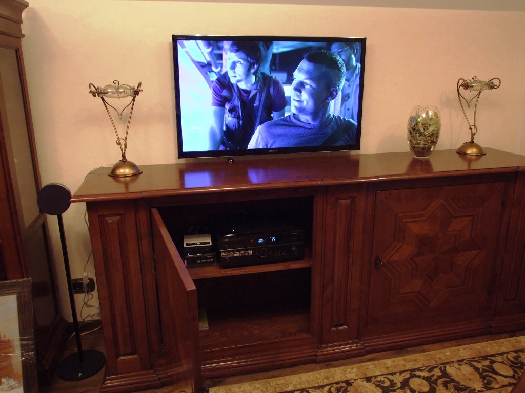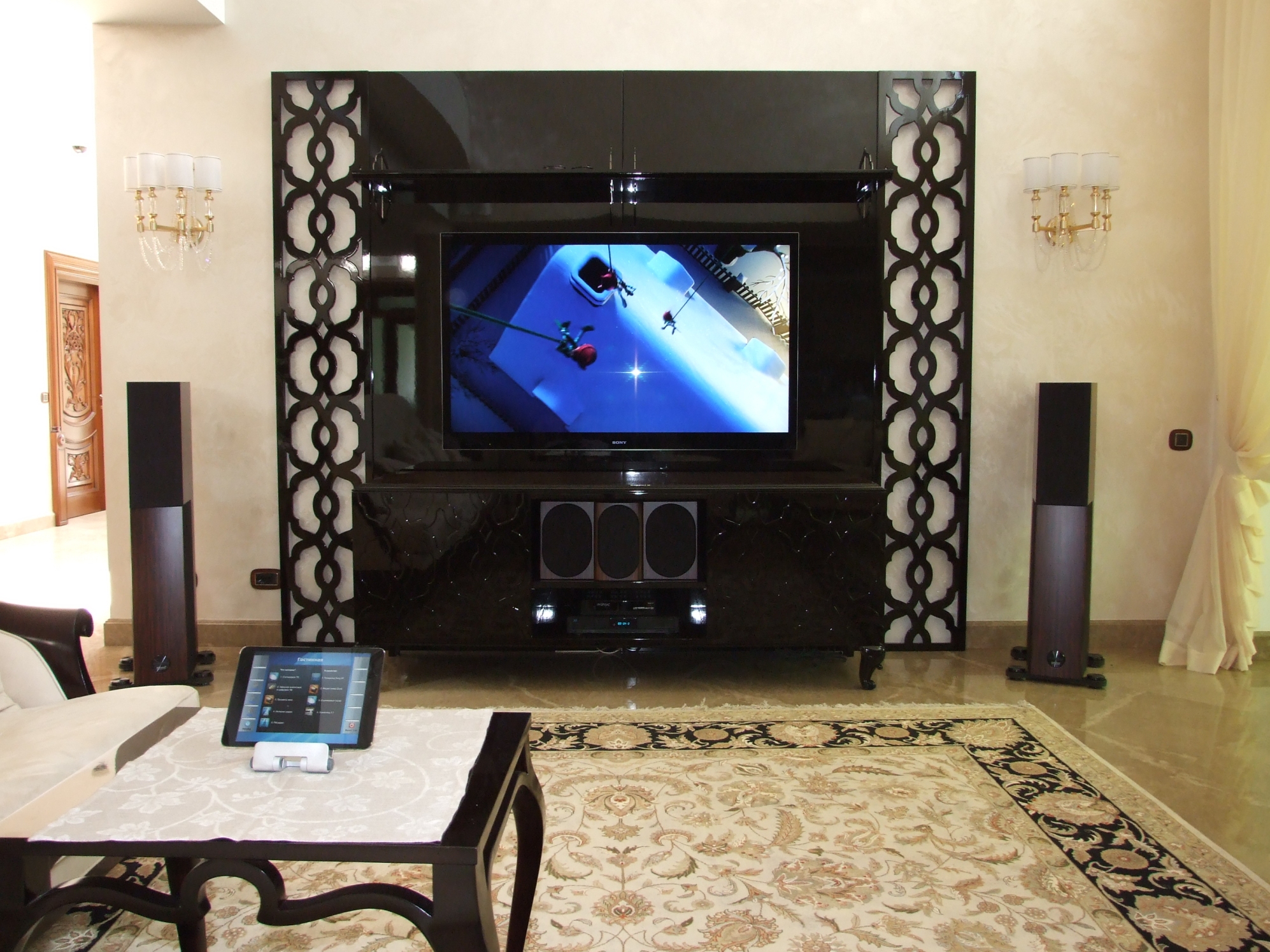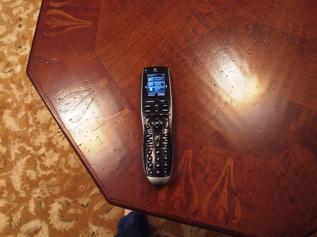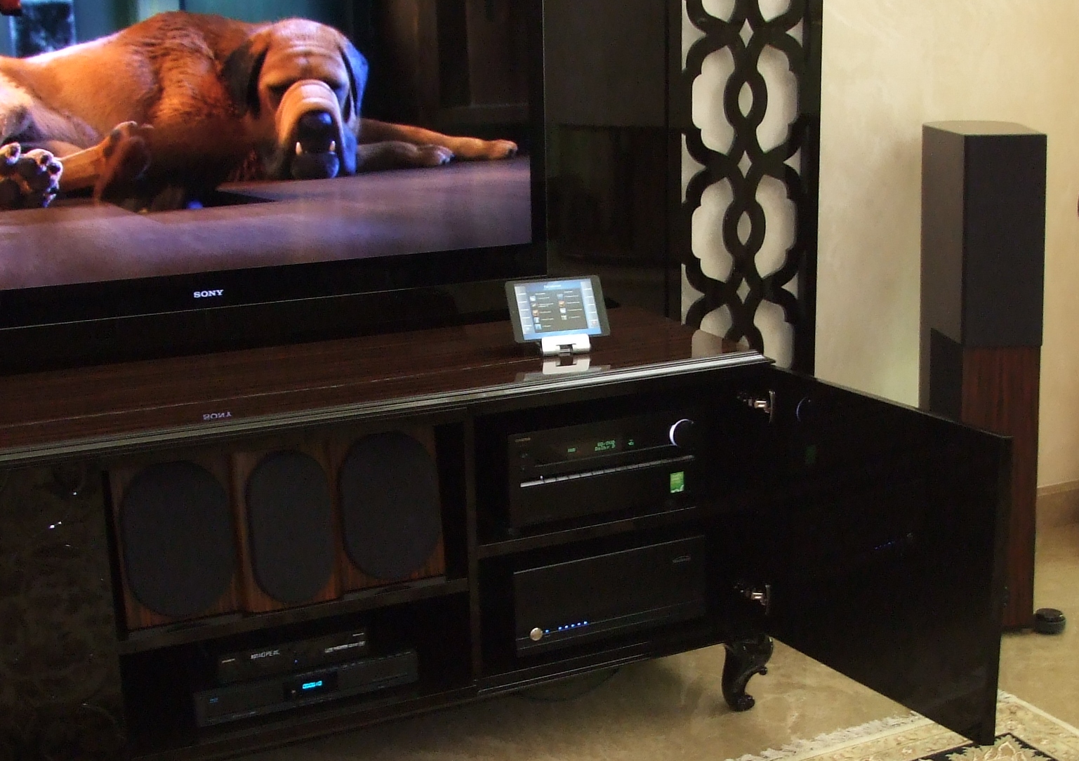 Все это спрятано в стойку и управляется одним универсальным пультом Logitech Harmony 900.
